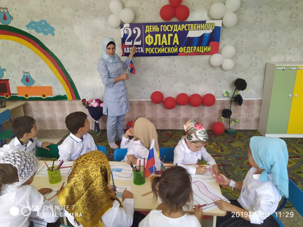 22.08.2019В целях патриотического воспитания дошкольников и привития им любви к Родине были проведены следующие мероприятия, посвященное « Дню государственного флага России»
