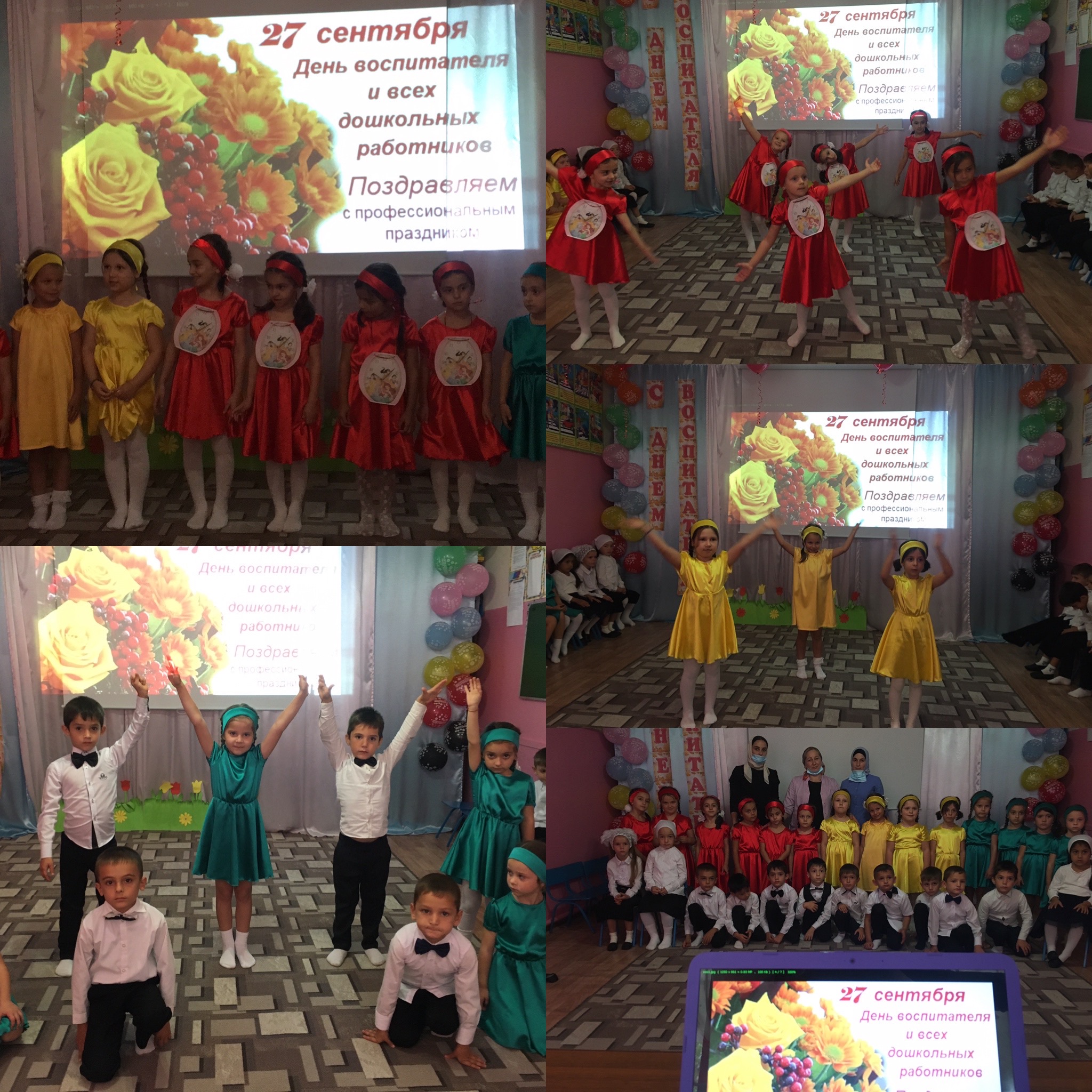 24 сентября в детском саду прошёл конкурс рисунков «Моя воспитательница», 26 сентября - в старшей группе "Радуга" и средней группе "Зайчата" провели мероприятие ко Дню дошкольного работника. Дети пели песни, танцевали, читали стихи о любимых воспитателях и нянях, о заведующей, о поваре , о медсестре и других работников детского сада. Все номера были яркие, интересные и красивые.