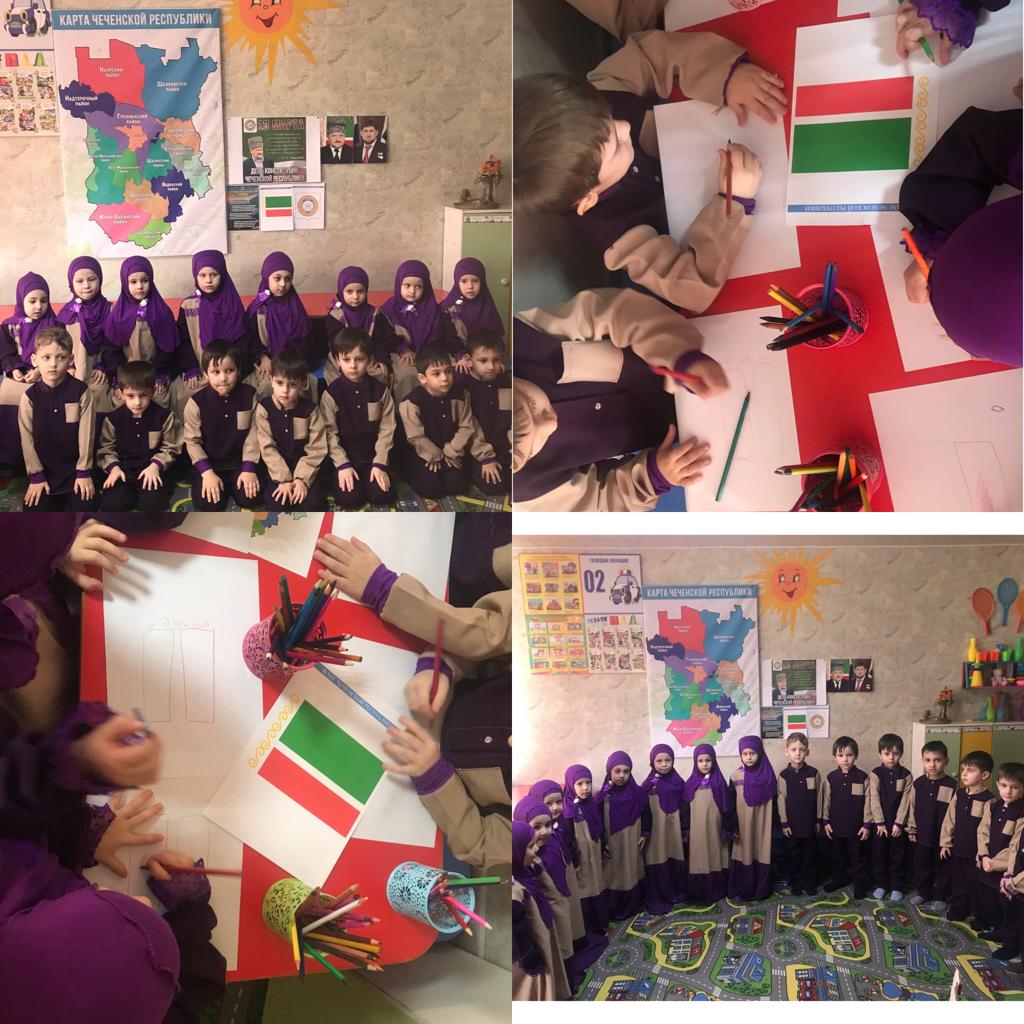 24.03.2022Воспитатели ,провели беседу на тему: «Конституция»,также были проведены выставки рисунков на тему Государственные символы ЧР.Воспитателями, был использован наглядный материал «Символика ЧР, флаг» Дети активно участвовали в предварительной беседе, где в своих рисунках отобразили флаг.