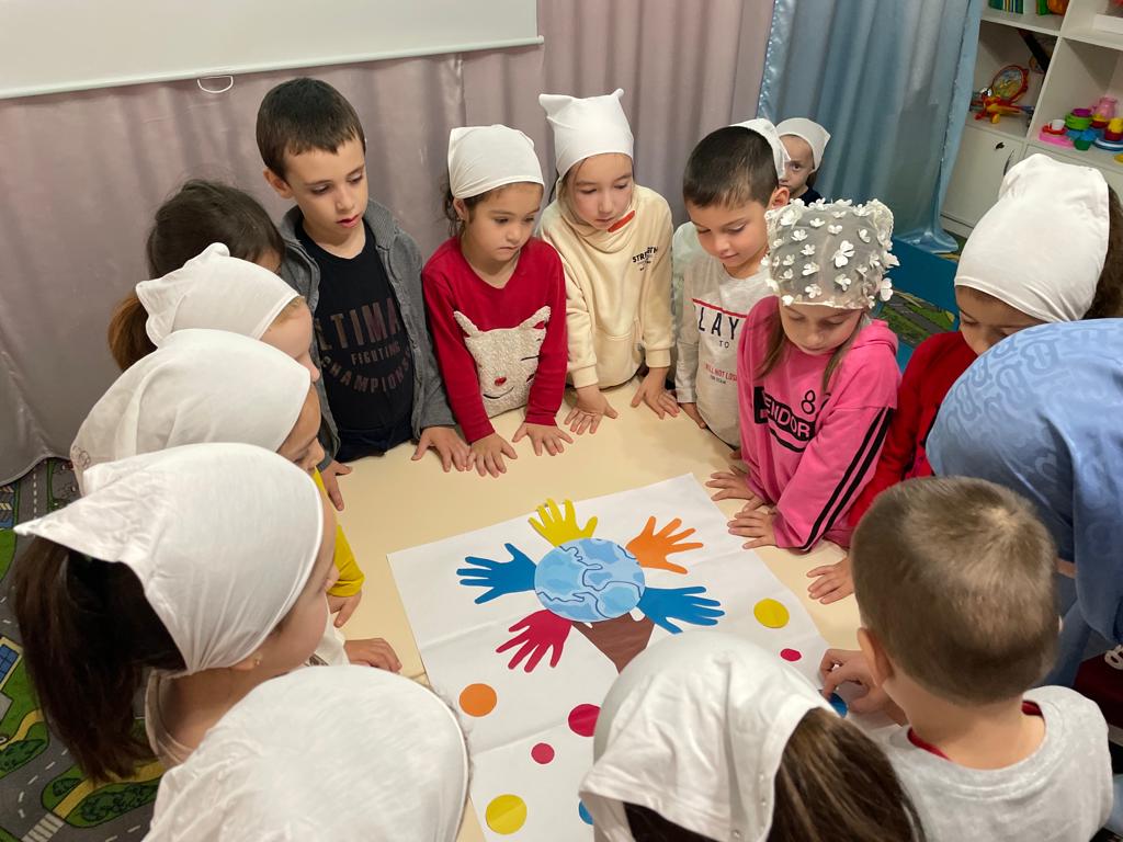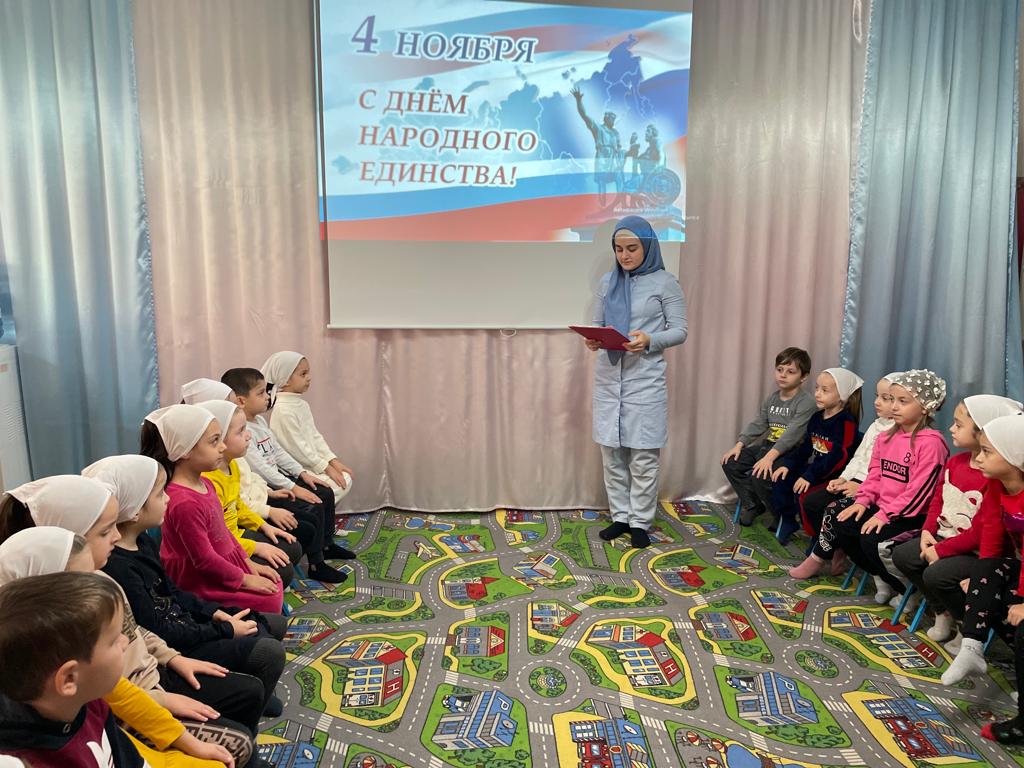В этот день воспитатели во всех возрастных группах провели беседы на темы «Беседа о людях разных национальностей живущих в России», «В единстве наша сила».